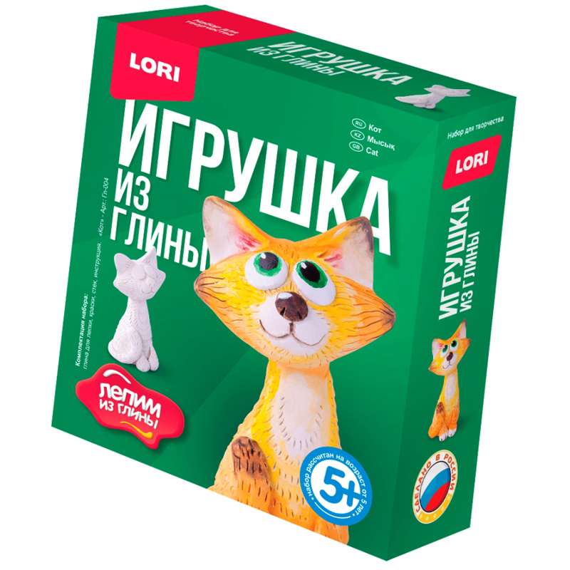 Данный набор предназначен для создания фигурки из белой глины. Процесс ее изготовления изложен в инструкции. Готовое изделие следует просушить на открытом воздухе при комнатной температуре. После того, как фигурка высохнет, ее можно раскрасить красками, входящими в набор. Глина для лепки нетоксична и безопасна при использовании по назначению.Набор для изготовления игрушек из глины Lori "Лепим из глины. Кот", от 5-ти лет, картон