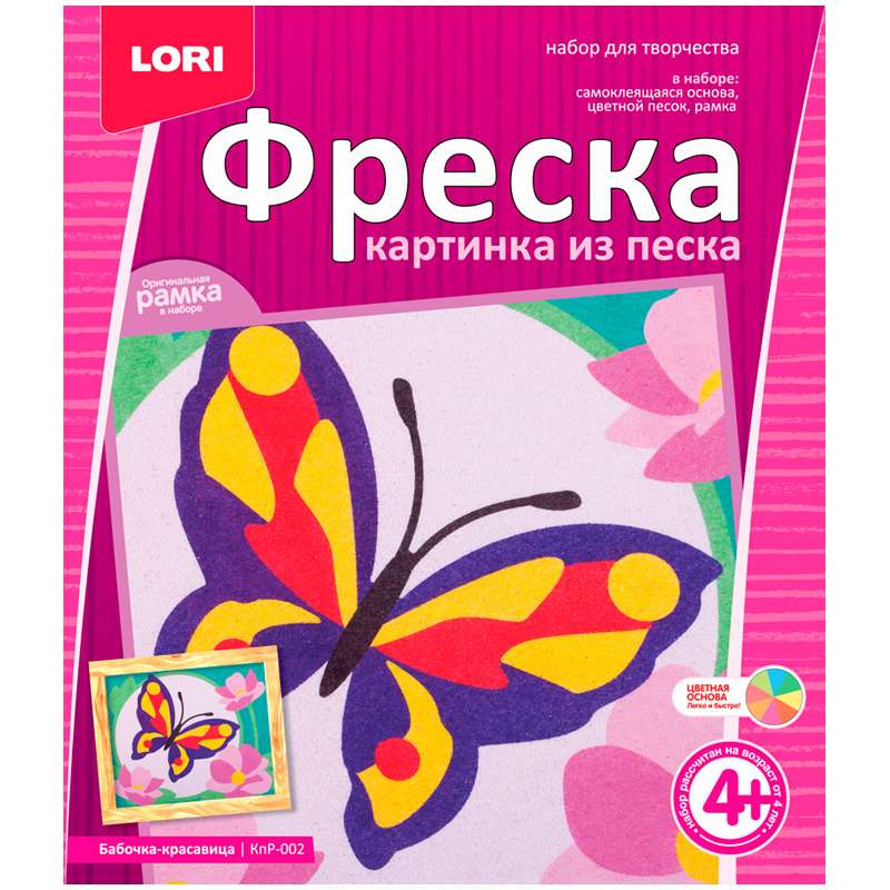 Главная / Товары / КАНЦТОВАРЫ / УПАКОВКА / ХОЗ ТОВАРЫ / РАСХОДНЫЕ МАТЕРИАЛЫ / Канцелярские товары - Школьные / Товары для творчества и хобби / Наборы для детского творчества / Наборы для рисования песком (фрески) / Фреска-картина из песка Lori "Бабочка-красавица", от 4-х лет, картонный конверт