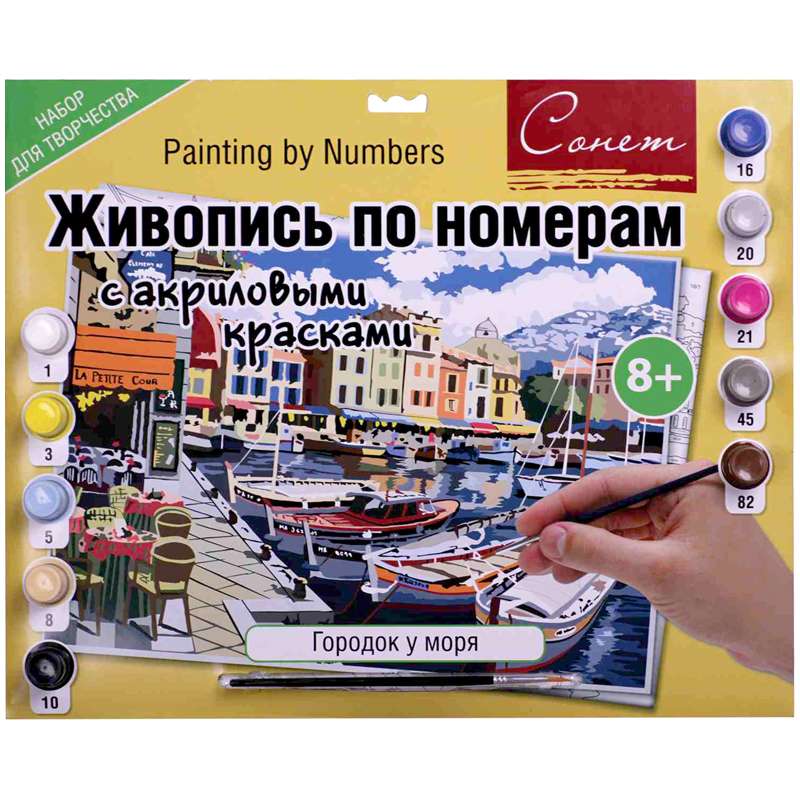Главная / Товары / КАНЦТОВАРЫ / УПАКОВКА / ХОЗ ТОВАРЫ / РАСХОДНЫЕ МАТЕРИАЛЫ / Канцелярские товары - Школьные / Товары для творчества и хобби / Наборы для детского творчества / Наборы для рисования / Картина по номерам Сонет "Городок у моря" A3, с акриловыми красками, картон, европодвес