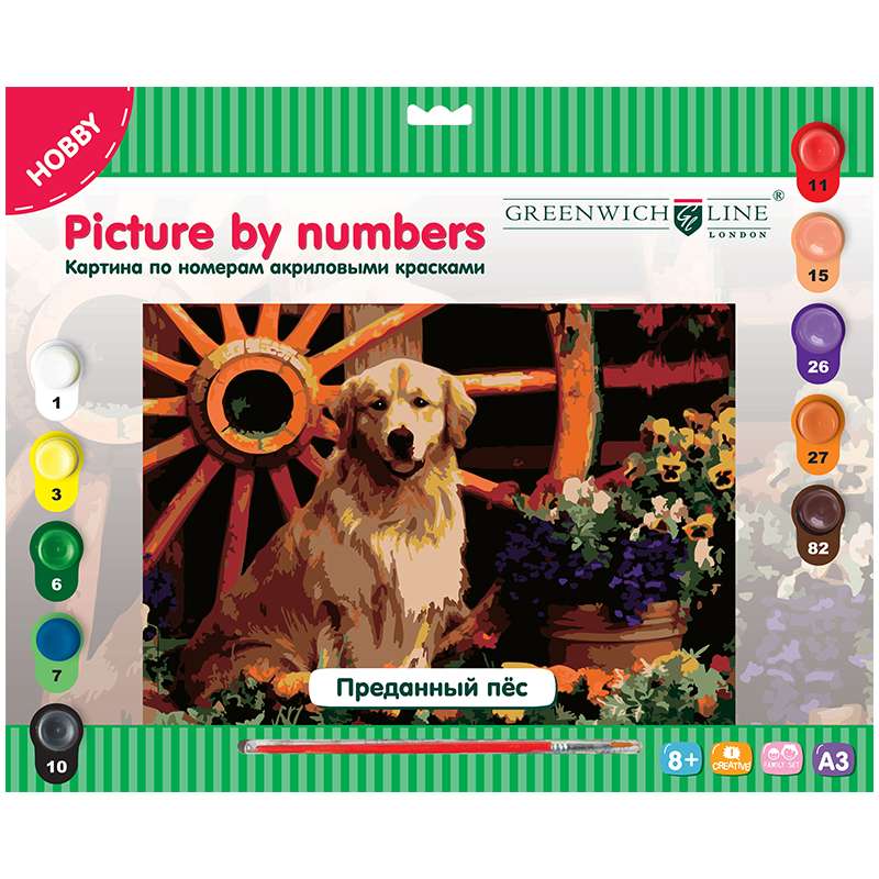 Главная / Товары / КАНЦТОВАРЫ / УПАКОВКА / ХОЗ ТОВАРЫ / РАСХОДНЫЕ МАТЕРИАЛЫ / Канцелярские товары - Школьные / Товары для творчества и хобби / Наборы для детского творчества / Наборы для рисования / Картина по номерам Greenwich Line "Преданный пёс" A3, с акриловыми красками, картон, европодвес