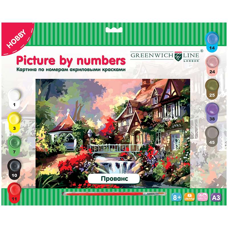 Главная / Товары / КАНЦТОВАРЫ / УПАКОВКА / ХОЗ ТОВАРЫ / РАСХОДНЫЕ МАТЕРИАЛЫ / Канцелярские товары - Школьные / Товары для творчества и хобби / Наборы для детского творчества / Наборы для рисования / Картина по номерам Greenwich Line "Прованс" A3, с акриловыми красками, картон, европодвес