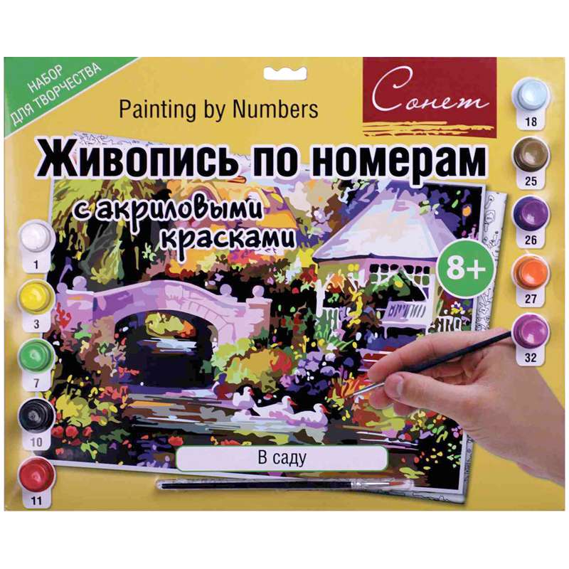 Главная / Товары / КАНЦТОВАРЫ / УПАКОВКА / ХОЗ ТОВАРЫ / РАСХОДНЫЕ МАТЕРИАЛЫ / Канцелярские товары - Школьные / Товары для творчества и хобби / Наборы для детского творчества / Наборы для рисования / Картина по номерам Сонет "В саду" A3, с акриловыми красками, картон, европодвес