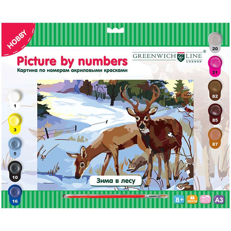 Главная / Товары / КАНЦТОВАРЫ / УПАКОВКА / ХОЗ ТОВАРЫ / РАСХОДНЫЕ МАТЕРИАЛЫ / Канцелярские товары - Школьные / Товары для творчества и хобби / Наборы для детского творчества / Наборы для рисования / Картина по номерам Greenwich Line "Зима в лесу" A3, с акриловыми красками, картон, европодвес