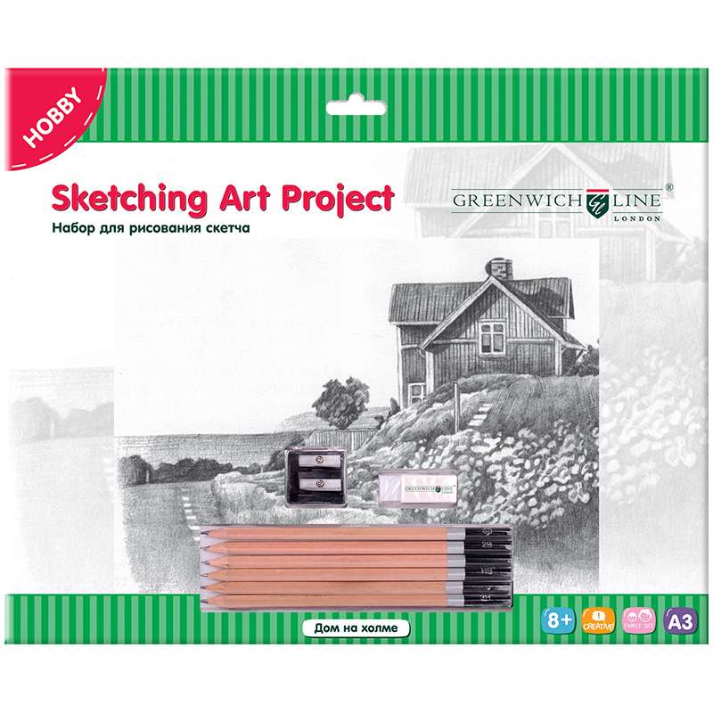 Главная / Товары / КАНЦТОВАРЫ / УПАКОВКА / ХОЗ ТОВАРЫ / РАСХОДНЫЕ МАТЕРИАЛЫ / Канцелярские товары - Школьные / Товары для творчества и хобби / Наборы для детского творчества / Наборы для рисования / Набор для рисования скетча Greenwich Line "Дом на холме", A3, карандаши, ластик, точилка, картон