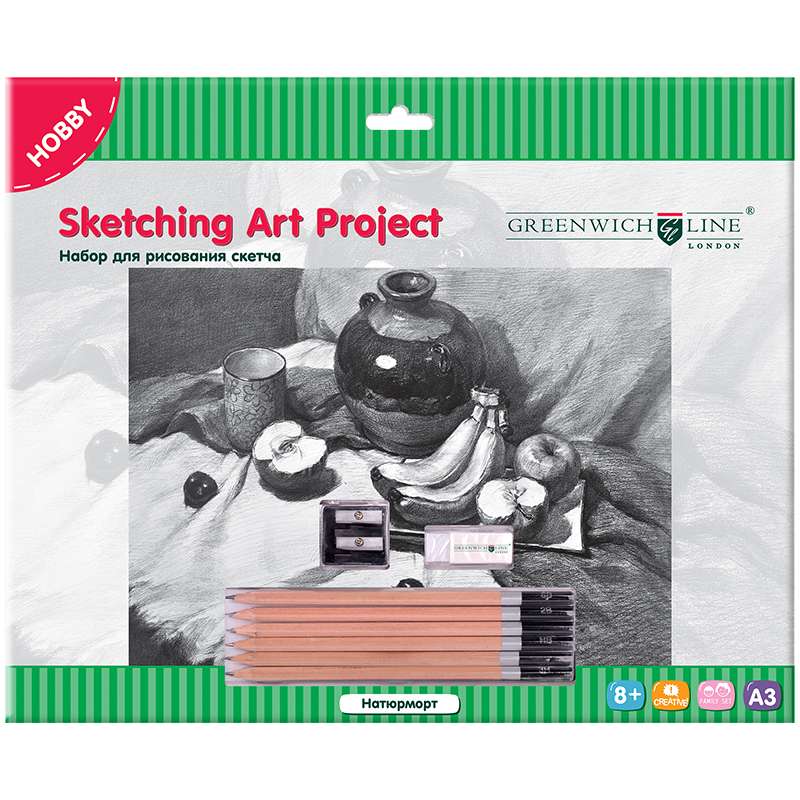 Главная / Товары / КАНЦТОВАРЫ / УПАКОВКА / ХОЗ ТОВАРЫ / РАСХОДНЫЕ МАТЕРИАЛЫ / Канцелярские товары - Школьные / Товары для творчества и хобби / Наборы для детского творчества / Наборы для рисования / Набор для рисования скетча Greenwich Line "Натюрморт", A3, карандаши, ластик, точилка, картон