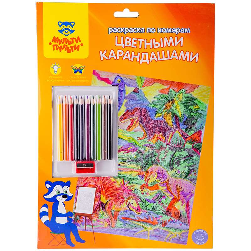 Главная / Товары / КАНЦТОВАРЫ / УПАКОВКА / ХОЗ ТОВАРЫ / РАСХОДНЫЕ МАТЕРИАЛЫ / Канцелярские товары - Школьные / Товары для творчества и хобби / Наборы для детского творчества / Наборы для рисования / Раскраска по номерам Мульти-Пульти "Динозавры" А4, с цветными карандашами, картон, европодвес