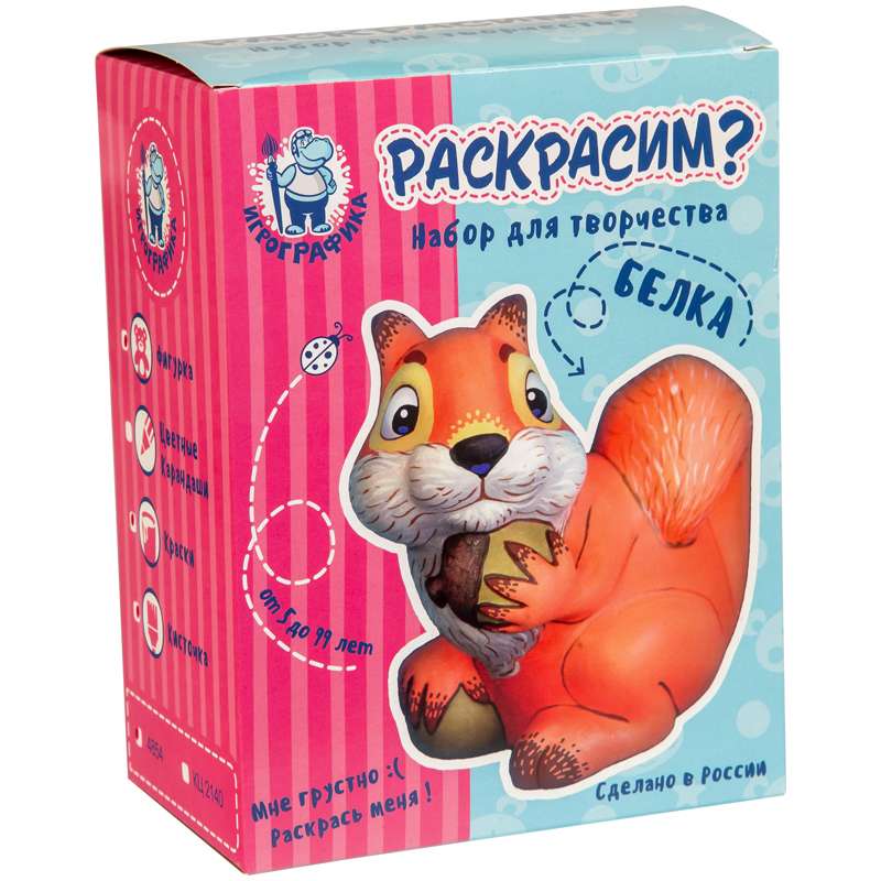 Белая керамическая фигурка для росписи красками или цветными карандашами. Краска легко смывается под водой, что позволяет перекрасить фигуру. Интересный набор, который позволит ребенку проявить свои творческие способности.Набор для росписи изделий из керамики "Белка", с акриловыми красками