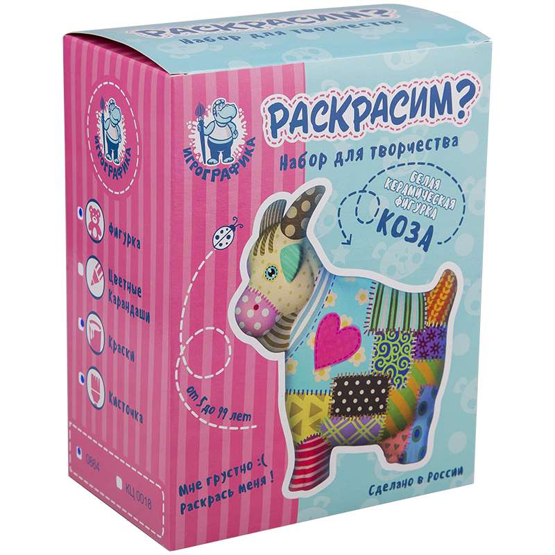 Главная / Товары / КАНЦТОВАРЫ / УПАКОВКА / ХОЗ ТОВАРЫ / РАСХОДНЫЕ МАТЕРИАЛЫ / Канцелярские товары - Школьные / Товары для творчества и хобби / Наборы для детского творчества / Наборы для росписи изделий / Набор для росписи изделий из керамики Игрографика с акриловыми красками "Коза"
