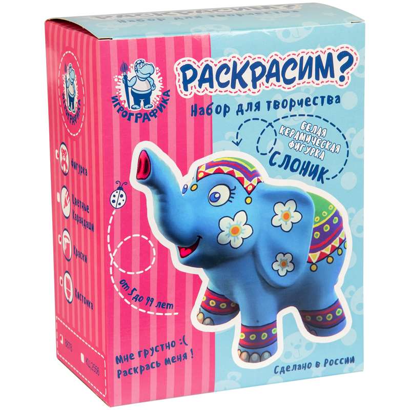 Главная / Товары / КАНЦТОВАРЫ / УПАКОВКА / ХОЗ ТОВАРЫ / РАСХОДНЫЕ МАТЕРИАЛЫ / Канцелярские товары - Школьные / Товары для творчества и хобби / Наборы для детского творчества / Наборы для росписи изделий / Набор для росписи изделий из керамики Игрографика с акриловыми красками "Слоник"