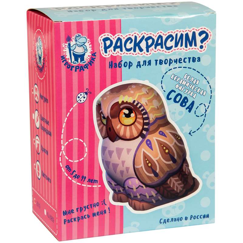 Главная / Товары / КАНЦТОВАРЫ / УПАКОВКА / ХОЗ ТОВАРЫ / РАСХОДНЫЕ МАТЕРИАЛЫ / Канцелярские товары - Школьные / Товары для творчества и хобби / Наборы для детского творчества / Наборы для росписи изделий / Набор для росписи изделий из керамики Игрографика с акриловыми красками "Сова"