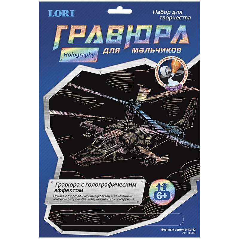 Главная / Товары / КАНЦТОВАРЫ / УПАКОВКА / ХОЗ ТОВАРЫ / РАСХОДНЫЕ МАТЕРИАЛЫ / Канцелярские товары - Школьные / Товары для творчества и хобби / Наборы для детского творчества / Наборы для создания гравюр / Гравюра с голографическим эффектом Lori для мальчиков "Военный вертолет КА-52"