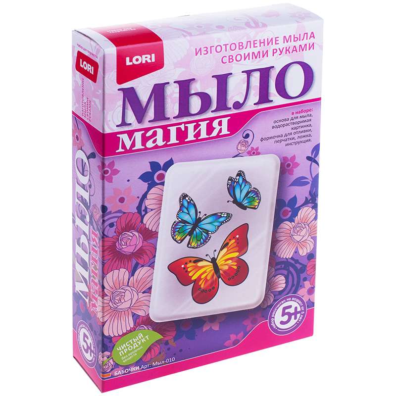 Главная / Товары / КАНЦТОВАРЫ / УПАКОВКА / ХОЗ ТОВАРЫ / РАСХОДНЫЕ МАТЕРИАЛЫ / Канцелярские товары - Школьные / Товары для творчества и хобби / Наборы для детского творчества / Наборы для создания парфюмерии и косметики / Набор для мыловарения с картинкой Lori Мыло Магия "Бабочки"