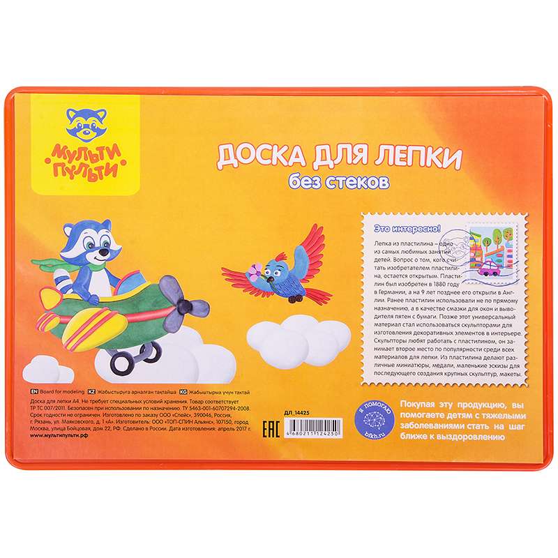 Главная / Товары / КАНЦТОВАРЫ / УПАКОВКА / ХОЗ ТОВАРЫ / РАСХОДНЫЕ МАТЕРИАЛЫ / Канцелярские товары - Школьные / Товары для творчества и хобби / Товары для лепки и скульптурных работ / Аксессуары и инструменты для лепки / Доска для лепки Мульти-Пульти, А4, полистирол, оранжевый
