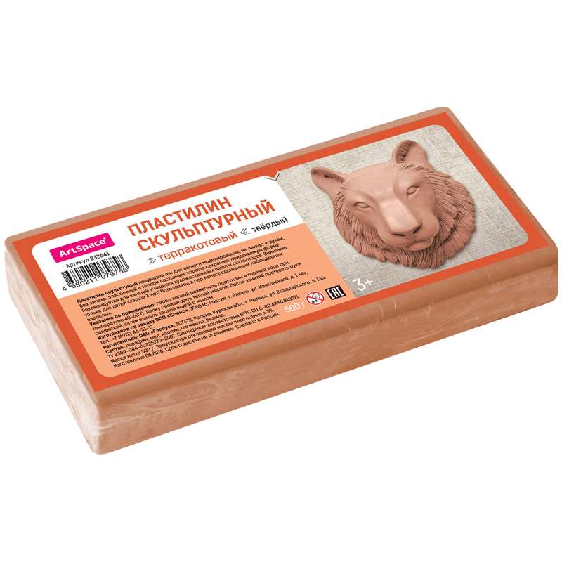 Пластилин скульптурный предназначен для лепки и моделирования, не липнет к рукам, без запаха, эластичный в теплом состоянии, хорошо сохраняет придаваемую формуПластилин скульптурный ArtSpace, терракотовый, твердый, 500г