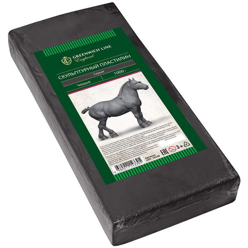 Скульптурный пластилин подходит для создания неповторимых предметов интерьера - аппликаций и картин. Такой пластилин отлично держит форму и устойчив к перепадам температуры. Он не имеет запаха, не токсичен. Пластилин не оставляет пятен и не липнет к рукам.Пластилин скульптурный Greenwich Line, серый, твердый, 1кг