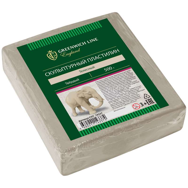 Пластилин скульптурный предназначен для лепки и моделирования, не липнет к рукам, без запаха, эластичный в теплом состоянии, хорошо сохраняет придаваемую формуПластилин скульптурный Greenwich Line, телесный, твердый, 500г