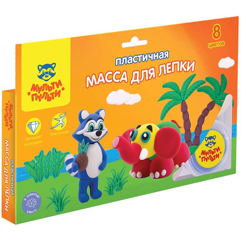 Масса для лепки Мульти-Пульти способствует формированию творческих способостей малышей. Ваш ребенок получит огромное удовольствие в процессе работы с массой! Цвета: белый, красный, оранжевый, желтый, зеленый, синий, фиолетовый, черный.Масса для лепки "Енот в Тайланде", 08 цветов, пластичная, картон, европодвес