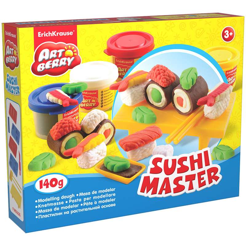 Набор разработан специально для самых маленьких детей. В него входят баночки с пластилином на растительной основе, а также безопасные формочки и аксессуары для моделирования. Занимаясь с таким набором, ребенок получит начальные навыки лепки: научится создавать простые формы и объемные фигурки, смешивать цвета пластилина между собой и получать новые оттенки, лепить разноцветные фигурки.Набор для лепки ArtBerry "Sushi Master", 04 цвета*35г, аксессуары, картон