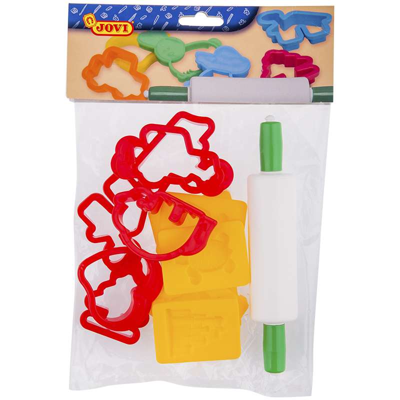 Набор из 24 форм и скалки для лепки и моделирования из пластилина, мягкой пасты/теста и других видов паст. Формочки с различными фигурками превратят процесс лепки в увлекательную игру для ребенка. Идеально подойдут для детского творчества дома, в детском саду, школе, в кружках и на дополнительных занятиях для детей. Страна производства Испания.Набор для лепки JOVI, формочки 12шт., скалка, пакет, европодвес