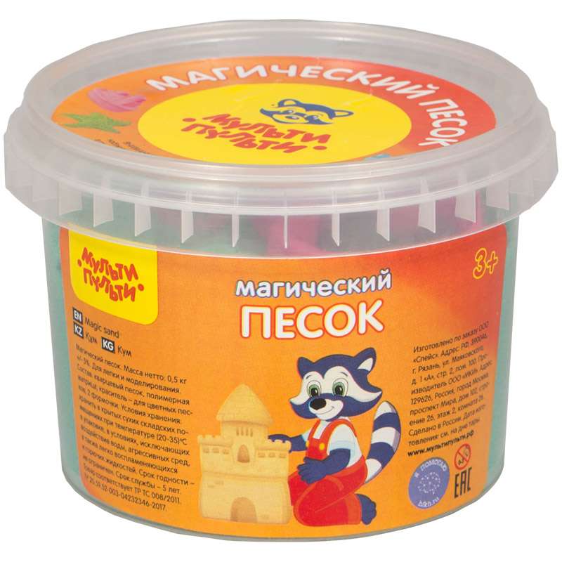 Магический песок не рассыпается и не высыхает, держит форму, лепится с помощью формочек или просто руками. С его помощью легко проявить фантазию и сделать яркие многоцветные или одноцветные фигурки. В комплекте есть формочки для лепки.Песок для лепки Мульти-Пульти "Магический песок", изумрудный, 500г, 2 формочки