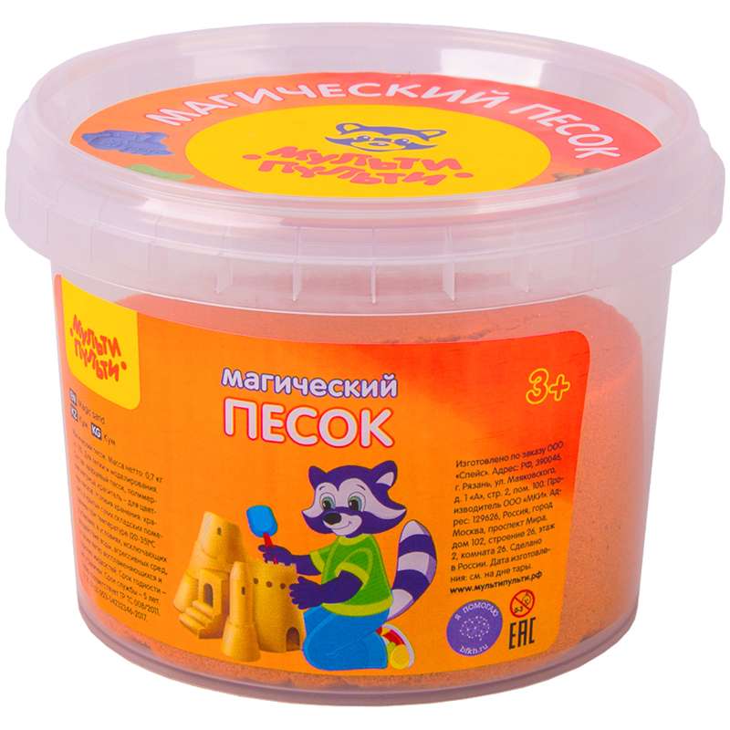 Магический песок не рассыпается и не высыхает, держит форму, лепится с помощью формочек или просто руками.Песок для лепки Мульти-Пульти "Магический песок", оранжевый, 700г
