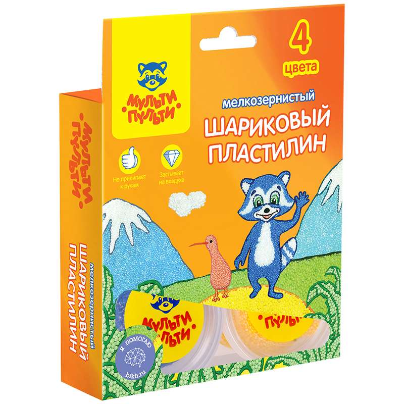 Мелкозернистый шариковый пластилин Мульти-Пульти создан специально для малышей: прекрасно развивает и тренирует мелкую моторику рук, способствует формированию правильного восприятия цвета, положительно влияет на эмоциональное состояние ребенка. Используя шариковый пластилин, Вы можете создать поделку любой формы или украсить уже готовое изделие. Цвета: белый, красный, желтый, синий.Пластилин шариковый Мульти-Пульти "Енот в Новой Зеландии", 04цв., мелкозерн., застывающий, европод.