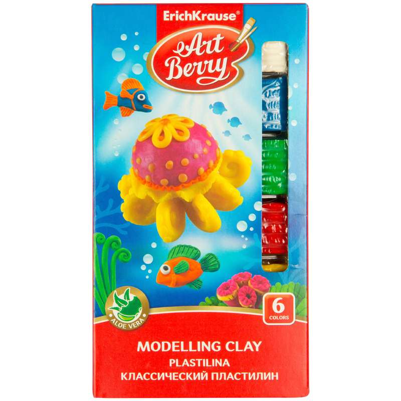 Набор классического пластилина с алоэ вера. Практичная картонная упаковка демонстрирует цветовую палитру. Индивидуальная упаковка брусков надежно сохраняет его товарный вид и пластичные свойстваПластилин ArtBerry классический, 06 цветов, 108г, со стеком, с алоэ вера, картон