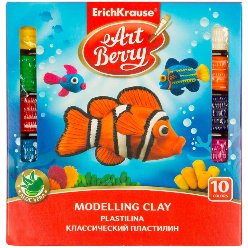 Набор классического пластилина с алоэ вера. Практичная картонная упаковка демонстрирует цветовую палитру. Индивидуальная упаковка брусков надежно сохраняет его товарный вид и пластичные свойстваПластилин ArtBerry классический, 10 цветов, 180г, со стеком, с алоэ вера, картон