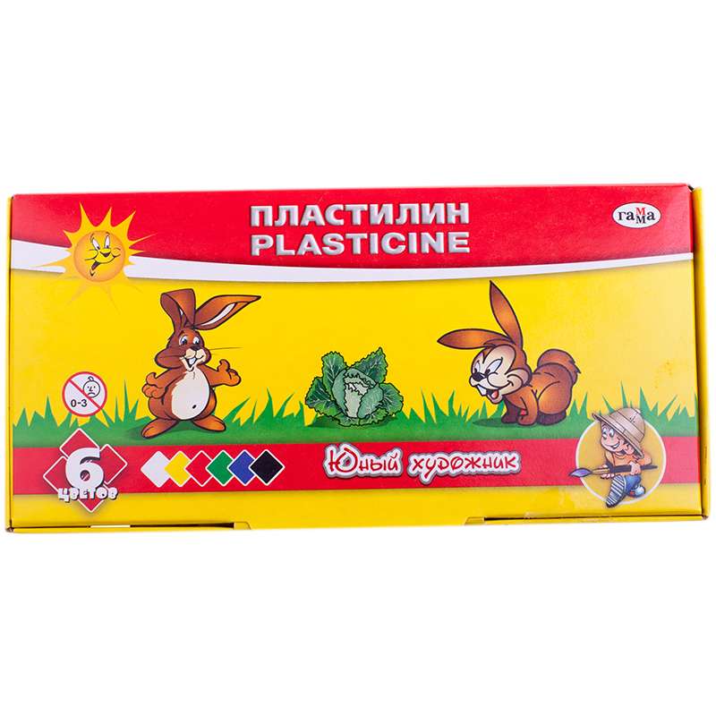 Предназначен для занятий лепкой. Развивает детскую микромоторику и творческие способности. Пластилиновая масса не имеет запаха, не вызывает аллергических реакций, не токсична. В набор входят 6 брусочков различных цветов и стек.Пластилин Гамма "Юный художник", 06 цветов, со стеком, картон