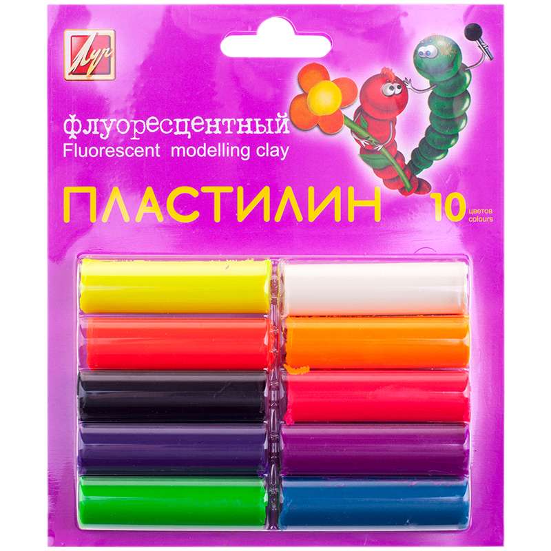 Пластилин флуоресцентный имеет яркие и насыщенные цвета. Обладает отличными пластичными свойствами, хорошо разминается. Готовые поделки отличаются яркостью, красочностью. Выпускается в картонной коробке со стеком.Пластилин Луч "Флюрисветики", 10 цветов, 160г, со стеком, картон, европодвес