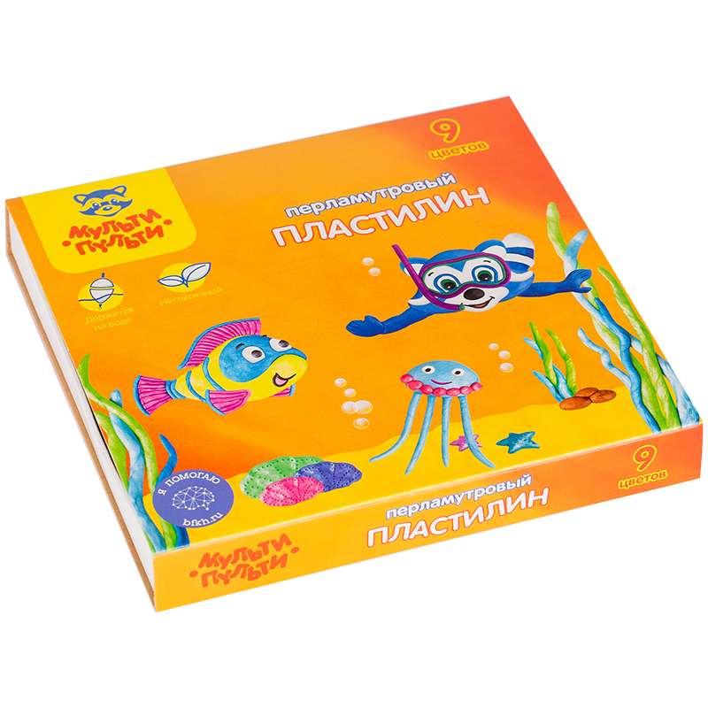 Перламутровый пластилин изготавливается из высококачественного сырья с добавлением перламутровых пигментов, имеет яркие чистые цвета с жемчужным блеском. Перламутровый пластилин легко разминается и моделируется детскими пальчиками, не пачкается, не крошится, не высыхает и держит форму. Благодаря использованию лёгких наполнителей перламутровый пластилин отлично держится на воде!Пластилин Мульти-Пульти "Енот в Черном море", 09 цветов, 108г, перламутр., плав., квадратный, картон