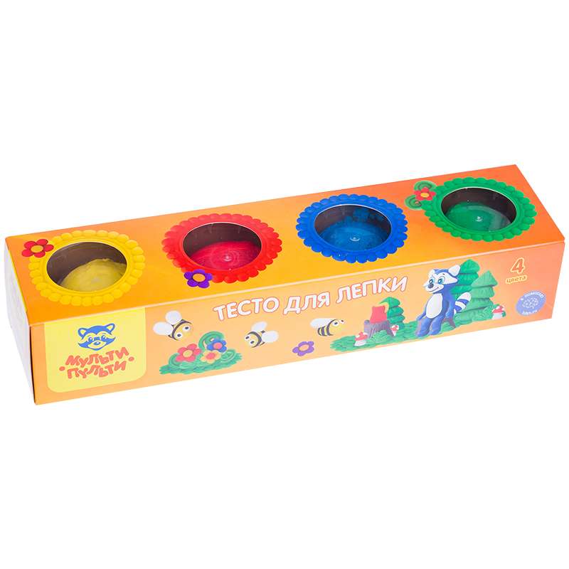 Работа с тестом для лепки Мульти-Пульти развивает и тренирует мелкую моторику рук ребенка, положительно влияет на его эмоциональное состояние. Цвета легко смешиваются.Тесто для лепки Мульти-Пульти "Енот на пасеке", 04 цвета*90г, картон