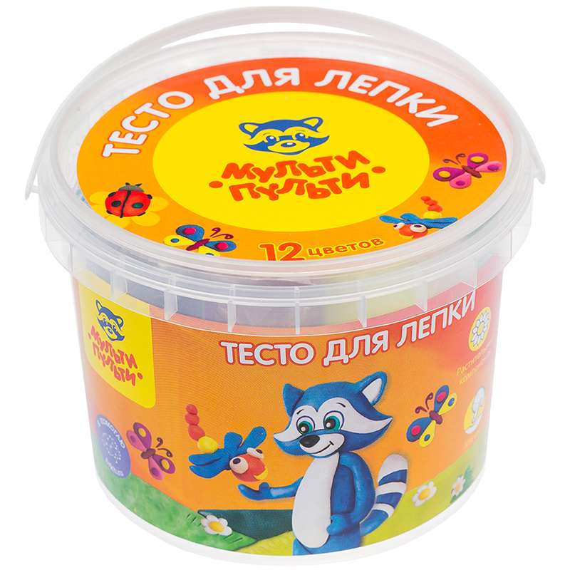 Работа с тестом для лепки Мульти-Пульти развивает и тренирует мелкую моторику рук ребенка, положительно влияет на его эмоциональное состояние. Цвета легко смешиваются.Тесто для лепки Мульти-Пульти "Енот в деревне", 12 цветов*30г, пластиковое ведро