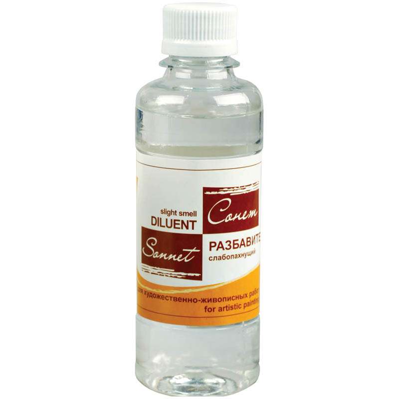 Изготовлен на основе очищенного уайт-спирита. Используется для разбавления масляных красок при межслойной обработке живописи. Можно работать как в классической, так и в любой современной технике живописи. Разбавитель хорошо высыхает и не дает жухлости.Разбавитель Сонет, слабопахнущий для художественно-живописных работ, 120мл