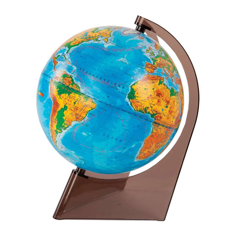 Глобус для занятий по географии на подставке. Компактен и нагляден. Диаметр глобуса - 210 мм.Глобус физический Глобусный мир, 21см, на треугольной подставке
