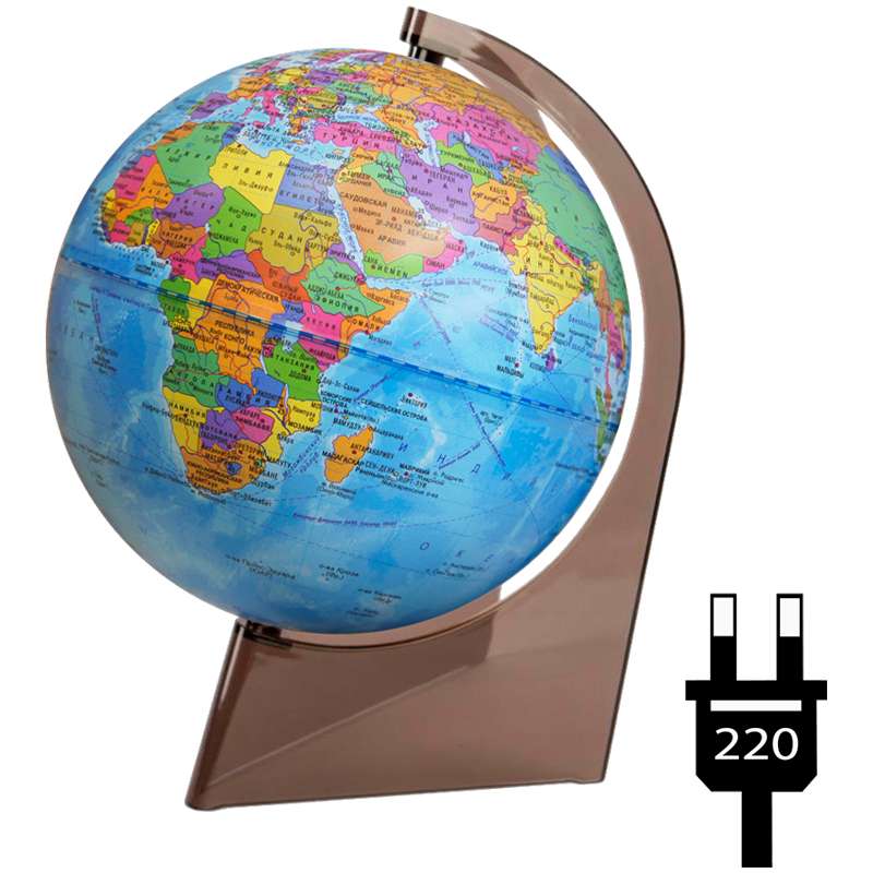 Глобус для занятий по экономической географии на подставке. Встроенная подсветка помогает увидеть даже самые мелкие детали. Диаметр глобуса - 210 мм.Глобус политический Глобусный мир, 21см, с подсветкой на треугольной подставке