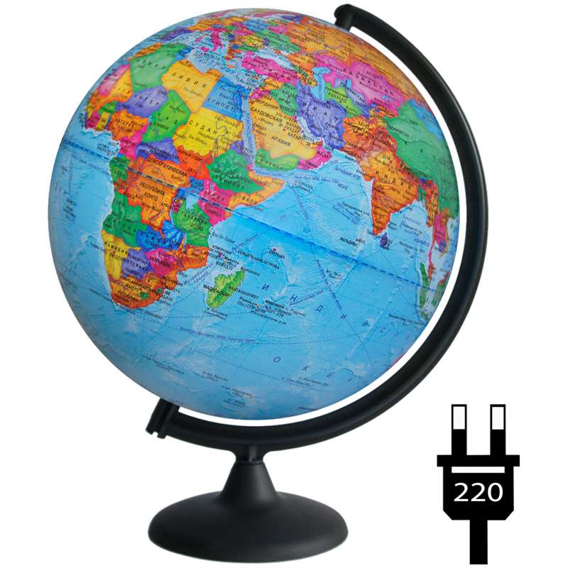 Глобус для занятий по экономической географии на подставке. Встроенная подсветка помогает увидеть даже самые мелкие детали. Диаметр глобуса - 320 мм.Глобус политический Глобусный мир, 32см, с подсветкой на круглой подставке
