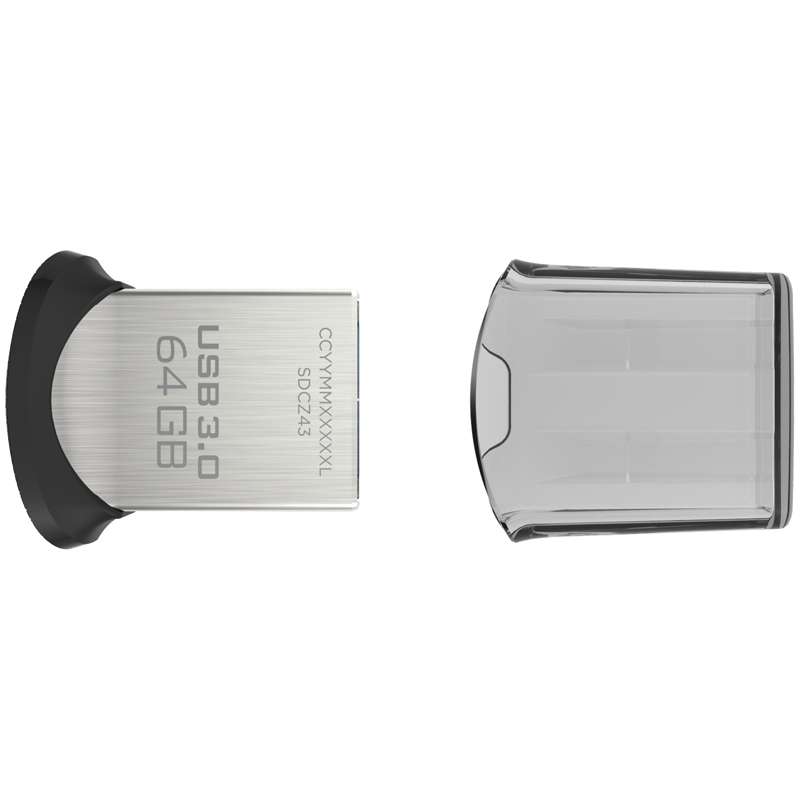 Память SanDisk "Ultra Fit" 64GB, USB 3.0 Flash Drive, хром