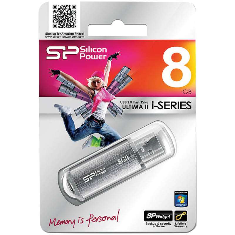 Silicon Power Ultima II специально разработан для тех, кому необходим доступный и стильный usb flash накопитель, который поддерживает USB 2.0, имеет небольшие размеры, но при этом достаточную вместительность. Ультра-компактный, сравнимый с размерами пальчиковой батарейки Ultima II можно использовать как модный аксессуар, или же просто носить в кармане. Всегда готовый к работе, Ultima II идеален для студентов, специалистов и всех, кому необходим удобный USB флеш накопитель для хранения документов, фотографий, презентаций, видео и музыки, где бы он ни был. Дизайн символизирует стремительное движение активного человека и отвечает его индивидуальным нуждам в работе, учёбе и развлечениях. Компактный размер позволяет легко и непринуждённо всюду носить флешку с собой, а также подключать к труднодоступным USB-портам.Память SiliconPower "Ultima II" 8GB, USB2.0 Flash Drive, Silver хром (металл.корпус)