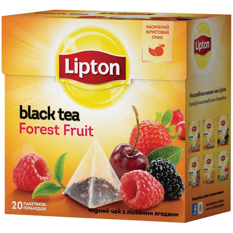"Фруктовая коллекция" Lipton предлагает палитру ярких впечатлений, незабываемых удовольствий и насыщенных вкусов – пять селекционных купажей черного чая с крупными кусочками сочных фруктов и ягод из «Фруктовой коллекции - Лесные Ягоды(Fores Fruit)». Листовой чай представлен в удобном формате пакетиков-пирамидок, которые обеспечивают лучшее заваривание и позволяют всем ингредиентам полностью раскрывать свой богатый вкус и природный аромат благодаря наличию свободного пространства внутри. Lipton Forest Fruit сочетает терпкость черного чая с ароматом спелой клубники, лесной малины и ежевики. Пикантную «кислинку» ему добавляют нотки красной смородины и вишни. Ягодный хоровод дарит черному чаю свежий вкус любимых ягод.Чай Lipton "Forest Fruit", черный с ароматом лесных ягод, 20 пакетиков по 1,7г