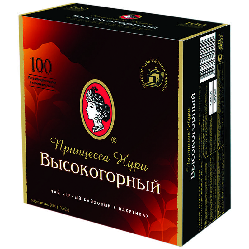 Начните свой день с чашки крепкого тонизирующего чая, выращенного на высокогорных плантациях Цейлона и Индии, где воздух наполнен благоуханием трав и цветов. Свежий вкус и тонкий аромат этого чая подарят вам бодрости и хорошего настороение.Чай Принцесса Нури "Высокогорный", черный, 100 пакетиков по 2г