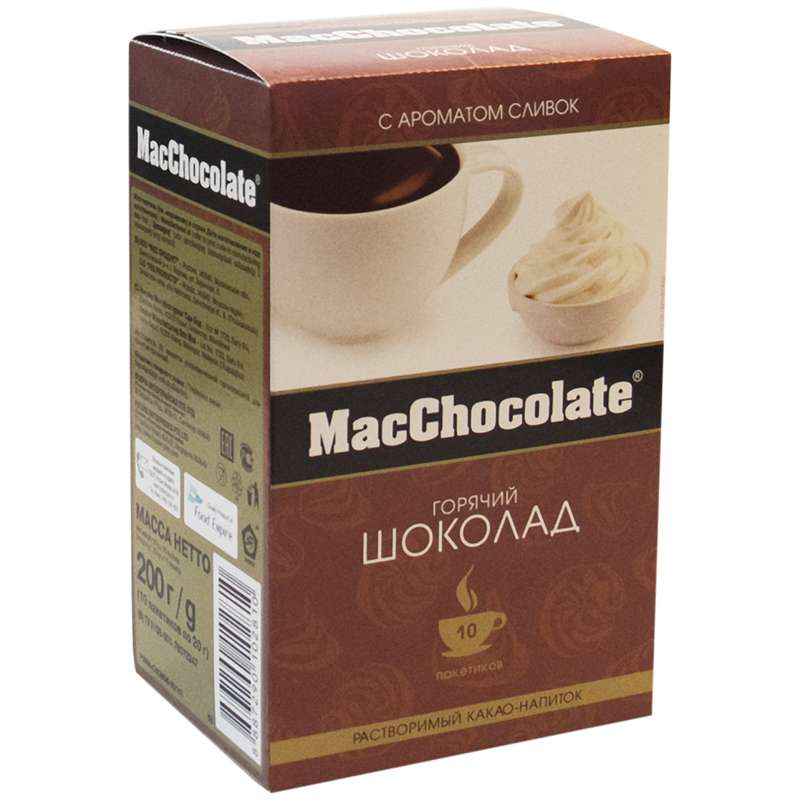 MacChocolate с ароматом сливок - это растворимый горячий шоколад высокого качества, который содержит натуральный какао-порошок и отличается насыщенным вкусом и ароматом. MacChocolate – лучшее, что вы можете приготовить за пару секунд!Какао-напиток MacChocolate с ароматом сливок, 10 пакетиков*20г