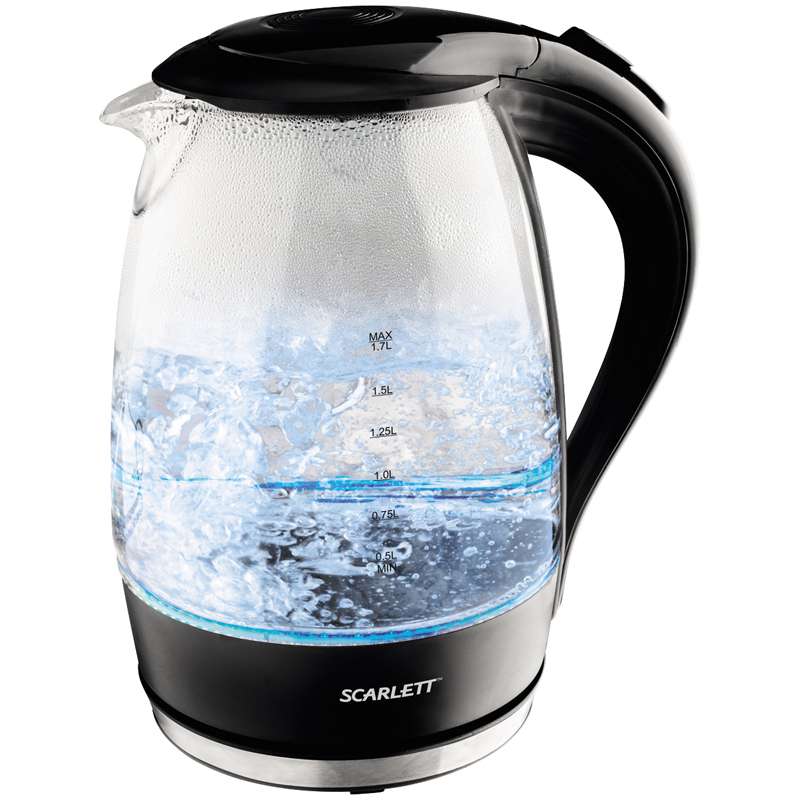 Чайник электрический SCARLETT SC-EK27G08 имеет уникальное дизайнерское решение, которое современные хозяйки оценят. Кобла выполнена из качественного прозрачного стекла, а ручка и крышка чайника – из черного пластика. Объем – 1.7 л, это хороший показатель для большой семьи. Скрытый нагревательный элемент избавит вас от видимых спиралей, которые быстро покрываются накипью. Чайник электрический SCARLETT SC-EK27G08 защищен от работы без жидкости и имеет автоматическое отключение при закипании. Приятным бонусом является подсветка воды, это значит, что в начале работы срабатывает световой индикатор и выключается только после полного закипания. Фильтр от появления накипи, позволит прослужить чайнику гораздо дольше.Чайник электрический Scarlett SC-EK27G08, 1,7л, 2200Вт, стекло/пластик