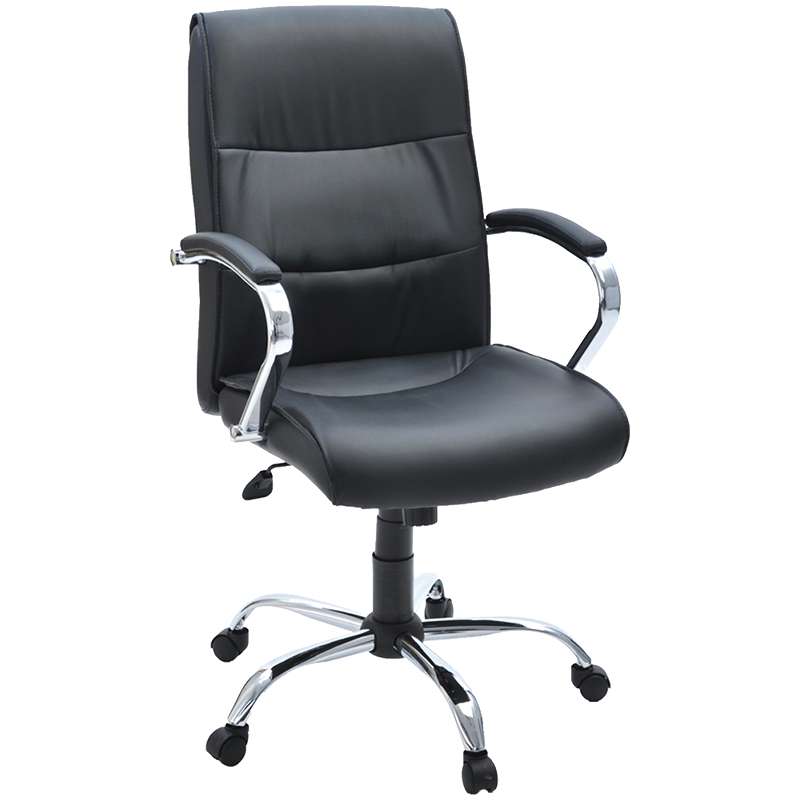 Кресло для руководителя "Стинг" обито экокожей черного цвета. Крестовина и подлокотники кресла металлические с покрытием хром. На подлокотниках имеются накладки из экокожи. Кресло выдерживает нагрузку до 120 кг. Оснащено механизмом качания Top Gun, который позволяет фиксировать спинку в рабочем положении. Есть возможность регулировки кресла по высоте (газлифт).Кресло руководителя "Стинг" СН, экокожа черная, механизм качания