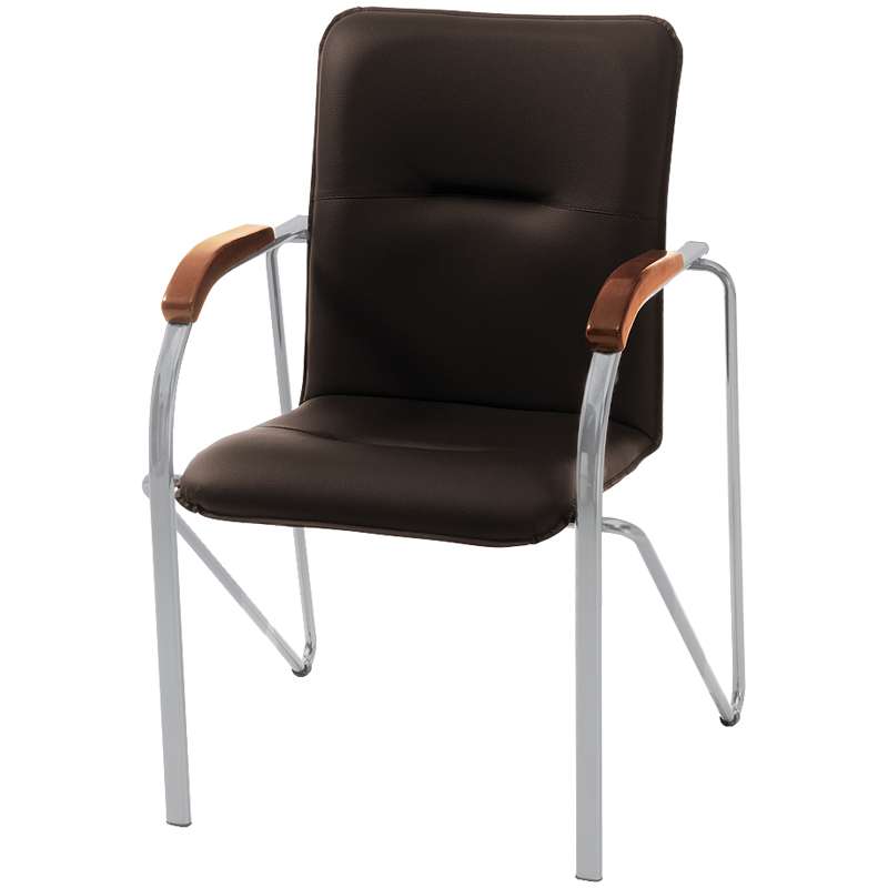Универсальность модели в её безупречной сочетаемости с самыми различными интерьерными решениями. Мягкое основание стула на прочном металлическом каркасе обеспечивает комфорт ожидания посетителям и сотрудникам. Деревянные накладки классического цвета "орех" добавляют особого лоска офисному стулу.Стул Самба, каркас алюм., обивка кожзам черный