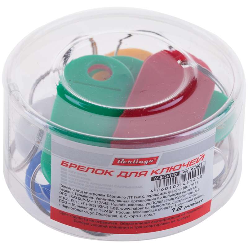 Главная / Товары / КАНЦТОВАРЫ / УПАКОВКА / ХОЗ ТОВАРЫ / РАСХОДНЫЕ МАТЕРИАЛЫ / Офисная мебель / Мебель металлическая / Ключницы, пеналы и брелоки для ключей / Набор брелоков для ключей Berlingo, 50мм, 12шт., пластиковый тубус