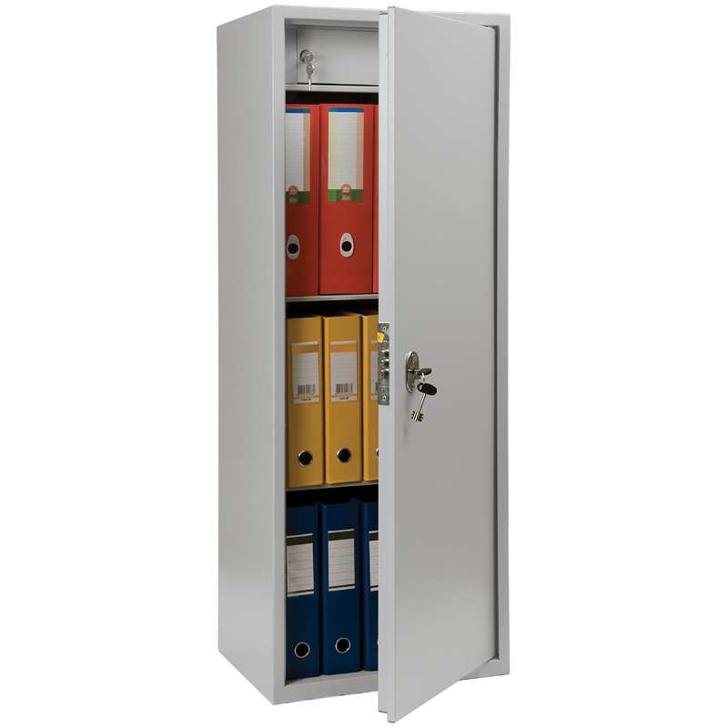 Предназначены для хранения документов в офисе. толщина лицевой панели – 1,2 мм, толщина боковых стенок – 1,2 мм, поставляются в собранном виде. Базовая комплектация – ключевые замки; комплектация EL – ключевой + электронный замок PLS-1. Оборудованы встроенным отделением, запирающимся на ключ. Поставляются в собранном виде.Шкаф бухгалтерский SL-125Т, 1252*460*340, ключевой замок