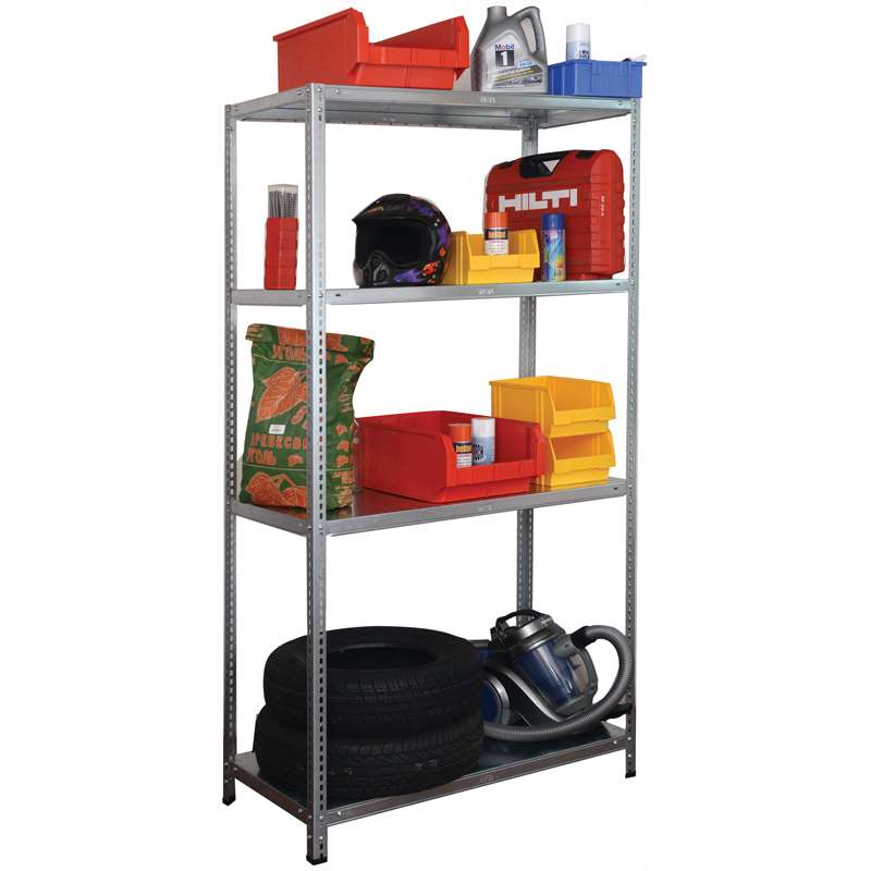 Универсальный металлический оцинкованный стеллаж с распределенной нагрузкой на полку 150 кг на стеллаж до 1000 кг.Стеллаж универс. оцинкованный 2000*1000*500, 4 полки (с крепежом)