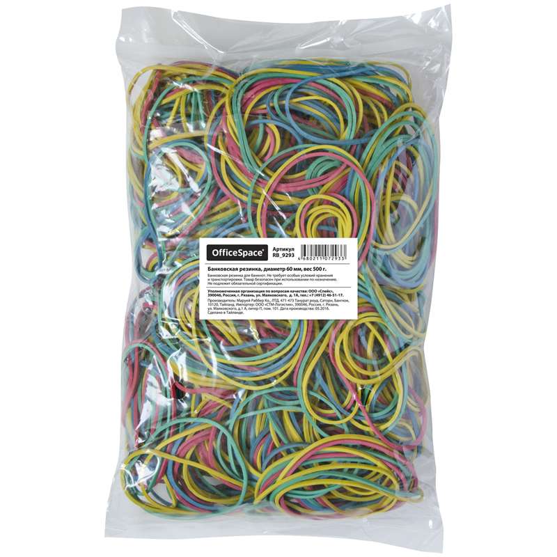 Банковская резинка для денег и бумаг. Упаковка - пакет без европодвеса. Материал - натуральный каучук. Количество резинок в пакете 650 штук ± 5%.Банковская резинка 500г OfficeSpace, диаметр 60мм, ассорти