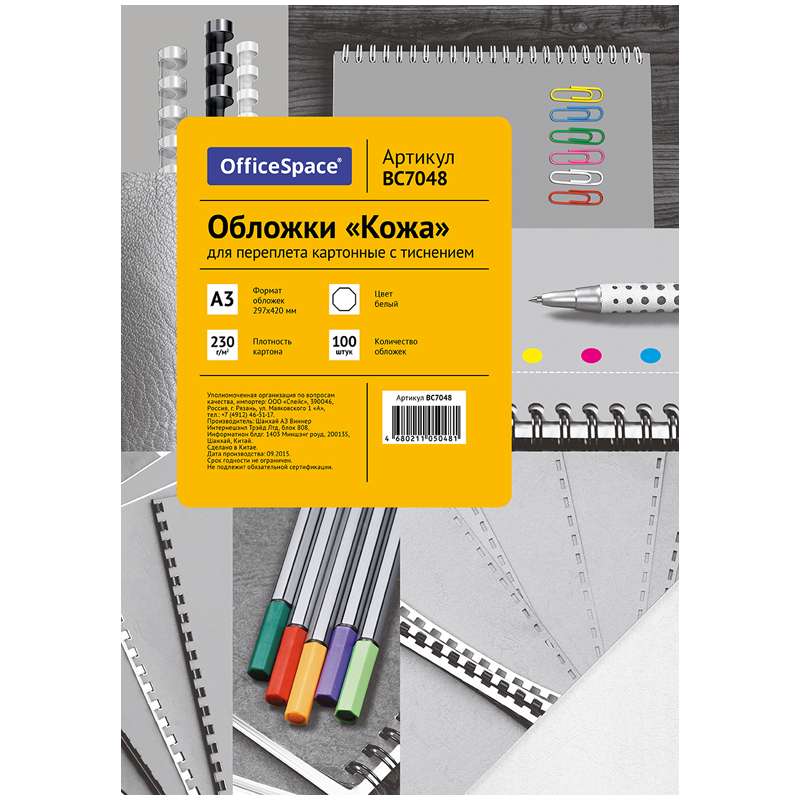 Главная / Товары / КАНЦТОВАРЫ / УПАКОВКА / ХОЗ ТОВАРЫ / РАСХОДНЫЕ МАТЕРИАЛЫ / Офисная техника и расходные материалы / Брощуровщики и расходные материалы для переплета / Обложки для переплета / Обложка А3 OfficeSpace "Кожа" 230г/кв.м, белый картон, 100л.